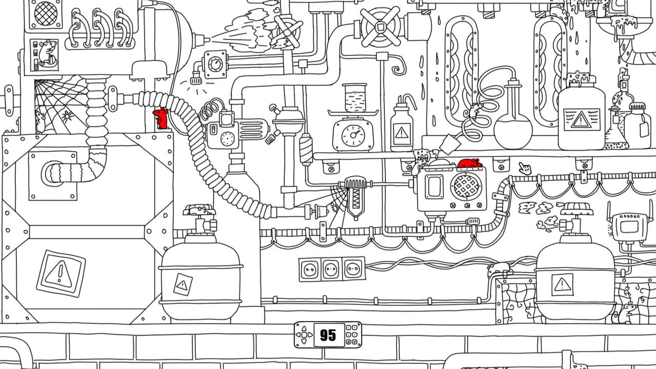 Hidden object game in the laboratory setting. Black and white hand-drawn graphics in a cartoon style. Difficult and interesting! Very large location!