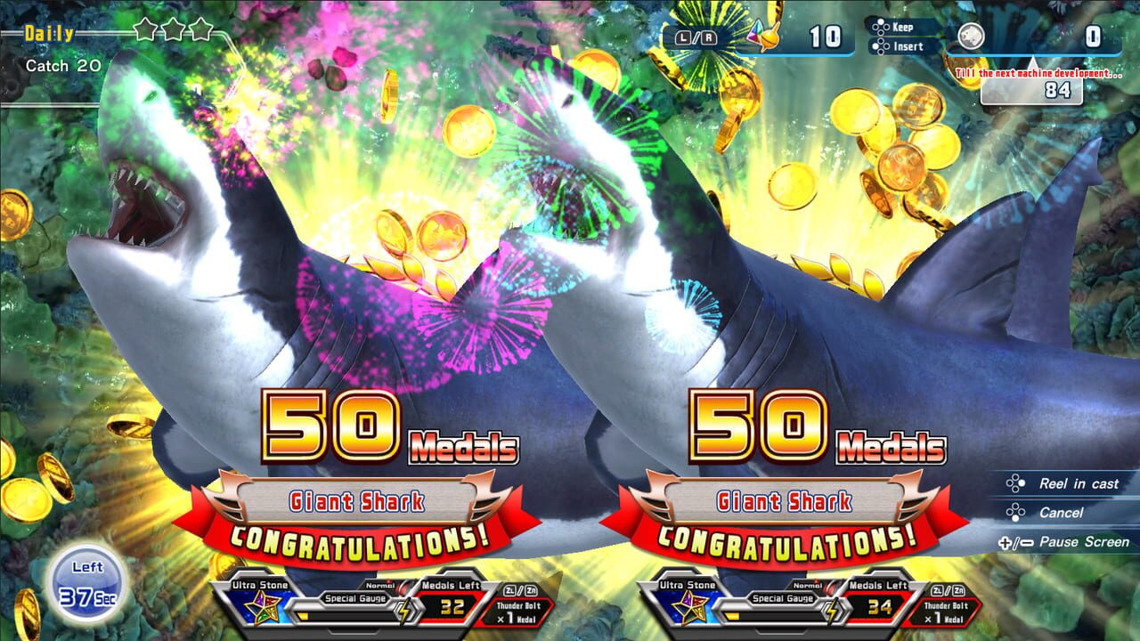 A fishing stimulation game where you reel in small fishes such as clownfish and boxfish as well as the big fishes such as angler shark, giant squid using a ‘Rod Controller’! Acquire medals when you catch a fish and get even more medals when you reel ...