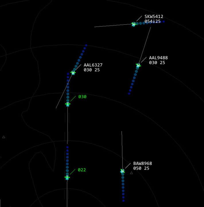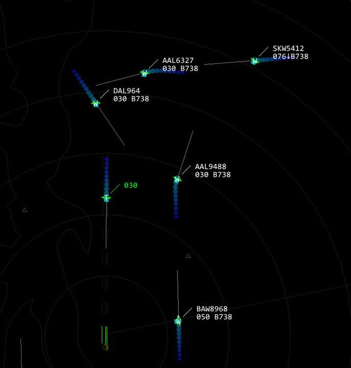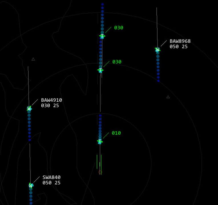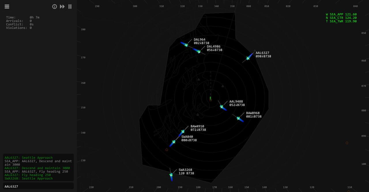 Coordinate max flow rate while maintaining separation between aircraft in this air traffic control simulator.