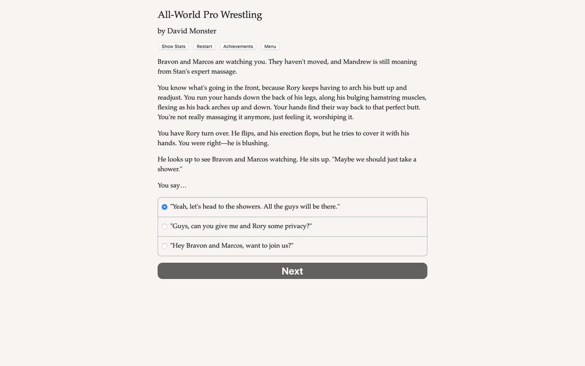 Wanna wrestle in the world’s foremost All-male Erotic Professional Wrestling Federation with other men? Customize your trainee and pick your wrestling style for the action inside and outside thing. Hook up with other trainees, vets, or even superstar...