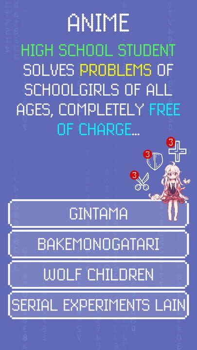 The rule is simple: choose the answer that suits provided description the most! There're also 3 types of hints in case you got stuck at some point: "additional info", "50/50", "one mistake is ok".
