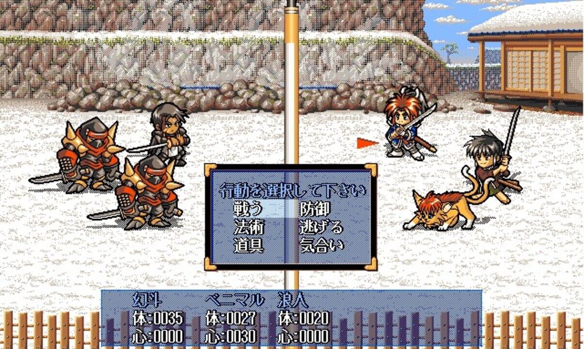 Appare-den: Fukuryuu no Shou plays like a traditional top-down Japanese RPG, with world map traveling, random enemies, and turn-based combat. The attacks in combat are animated; after the player has assigned command to all the characters, the animati...