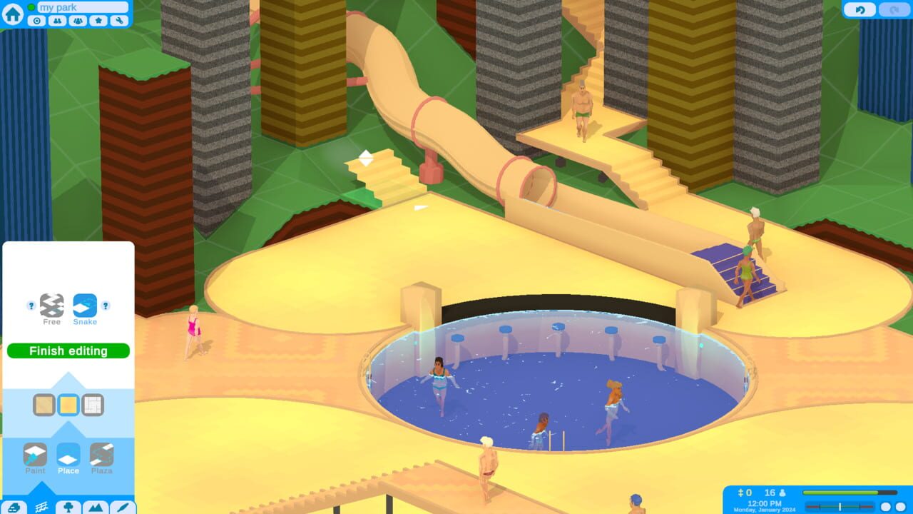 Inspired by classic theme park games, Aqua Mundo allows you to build the waterpark of your dreams! Design pools, lazy rivers, and water slides while sculpting an immersive thematic world. Keep guests entertained and maintain your infrastructure to ke...