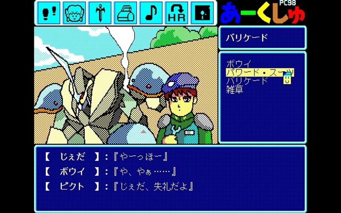 Arcshu: Kagerou no Jidai o Koete is loosely related to the greater Arcus series. It is a visual novel created in the parody style, and in the process hits many common pop culture items of the day (movies, novels, comics, animation, etc.). The story f...