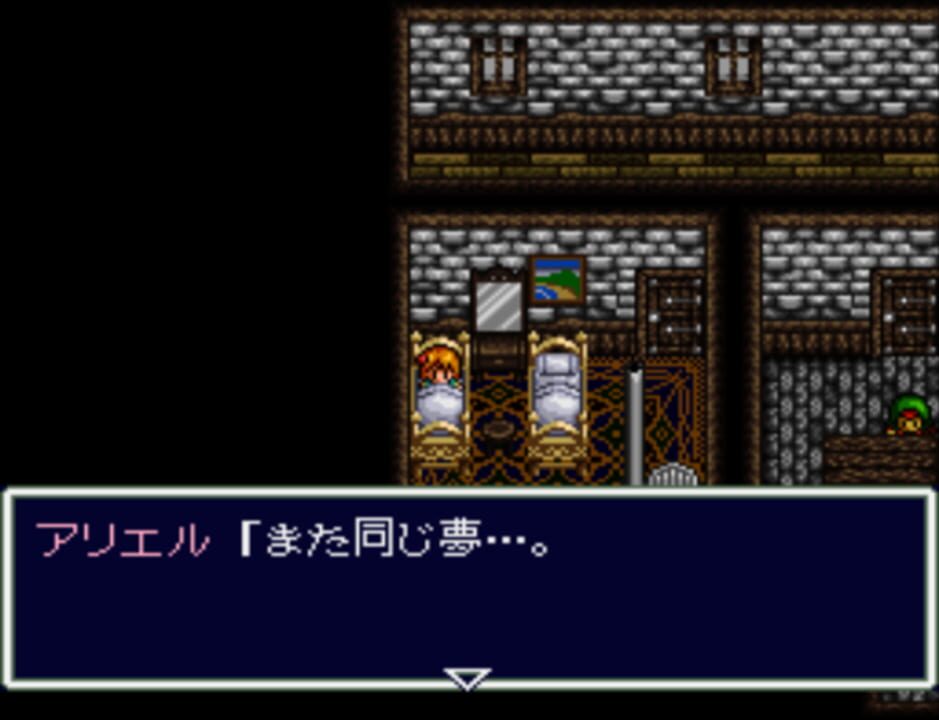 The game is a console-style RPG, where Ariel and her party travel on the world map, through forests, mountain paths, and caves, occasionally visiting towns and fighting monsters in turn-based combat viewed from first-person perspective, using a varie...