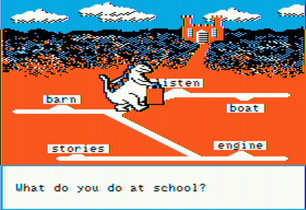 Bagasaurus is a game in which children control a dinosaur. The player has to move the Bagasaurus to the correct answer to questions/tasks which are presented at the bottom of the screen. One example is to pick up an animal which has a tail, picking u...