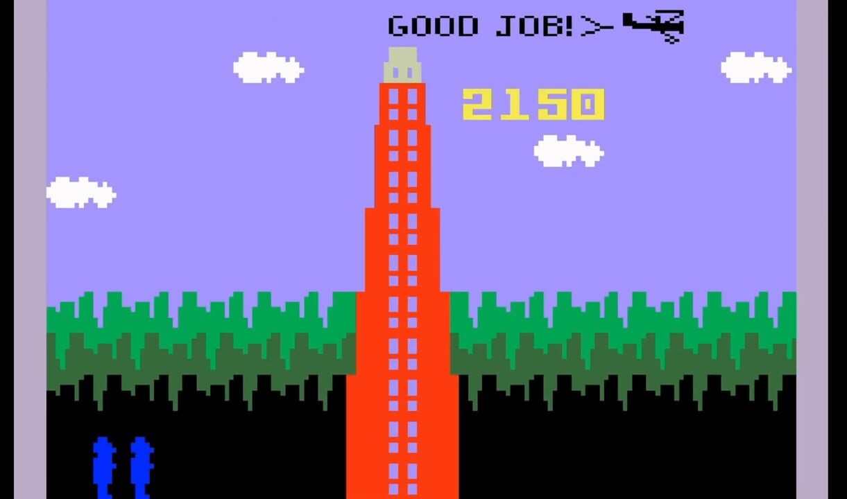 Horrible Hank has grabbed Tiny Mabel and climbed the old Mutton Building. Only Bashful Buford can save her. Help him scale the building - but watch out for those rolling boulders! birds and bats swoop down on Buford, and he leaps over scurrying rats....