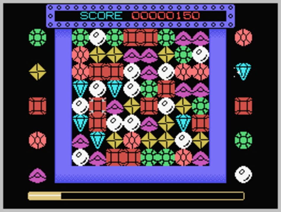 ColecoVision version of the popular game Bejeweled made by Daniel Bienvenu. The core game remains the same: matching up three or more of the same jewel by swapping their positions with neighboring jewels on a grid.