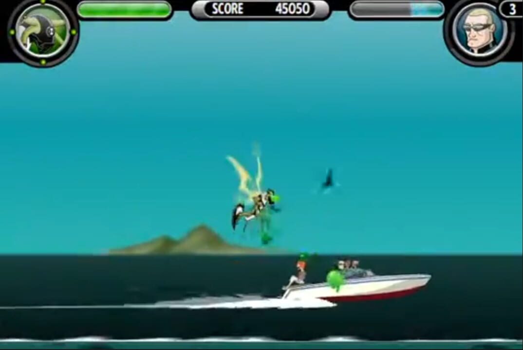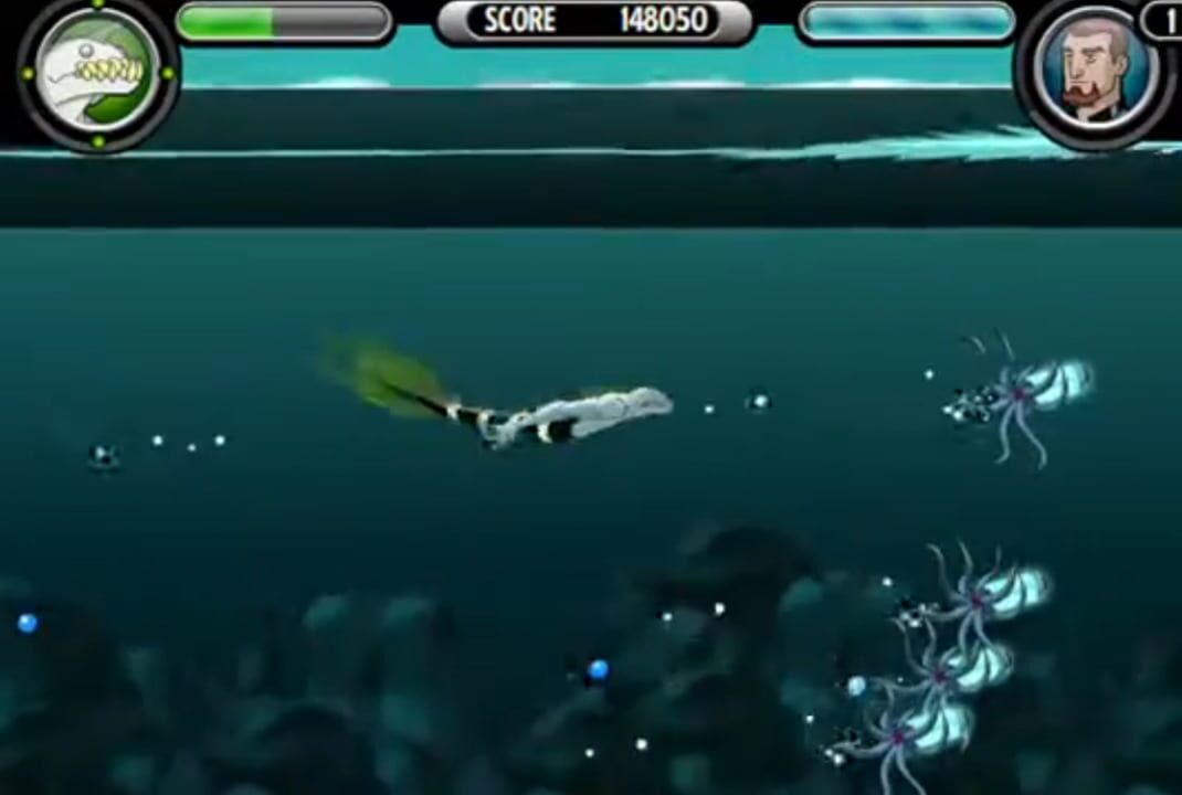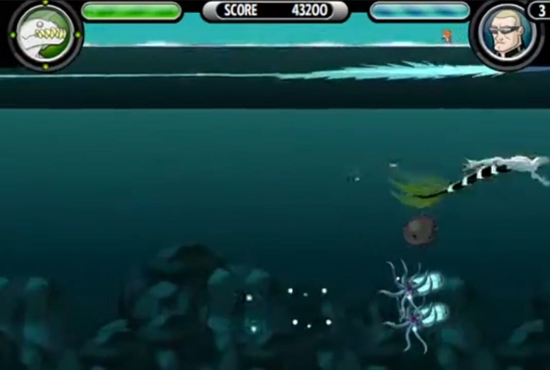 Your mission is to prevent Jonah Melville from stealing the Krakken's eggs and to rescue the bound and gagged Gwen. Avoid all of the enemies on the screen or kill them and avoid getting hit by the bombs the Jonah throws at you as Stinkfly.