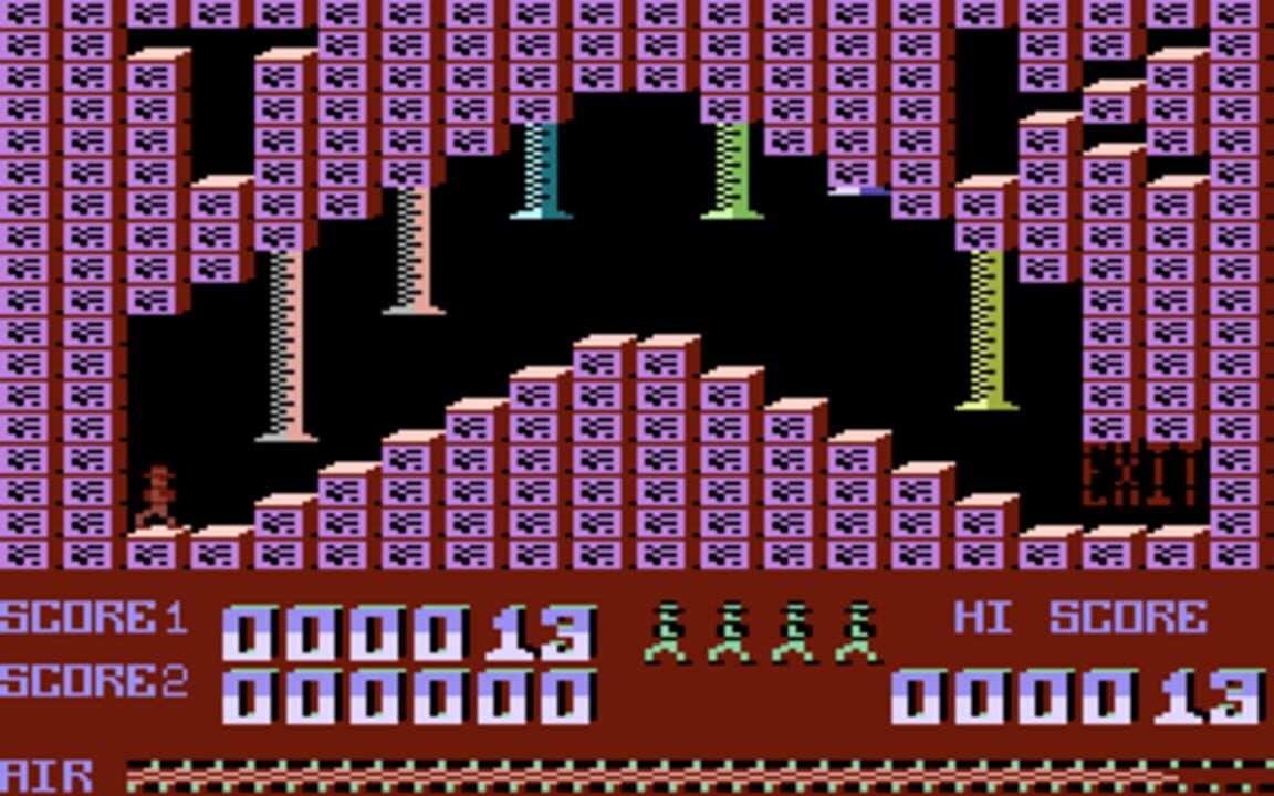 Mac must neutralise various single-screen vaults in this early platformer. He can climb ladders and safely fall any distance, as long as he lands on smooth ground. The puzzle aspect of the gameplay involves switches, which can remove walls, create fl...