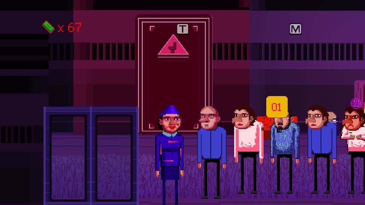 Sitcom train attendant blowing heads simulator