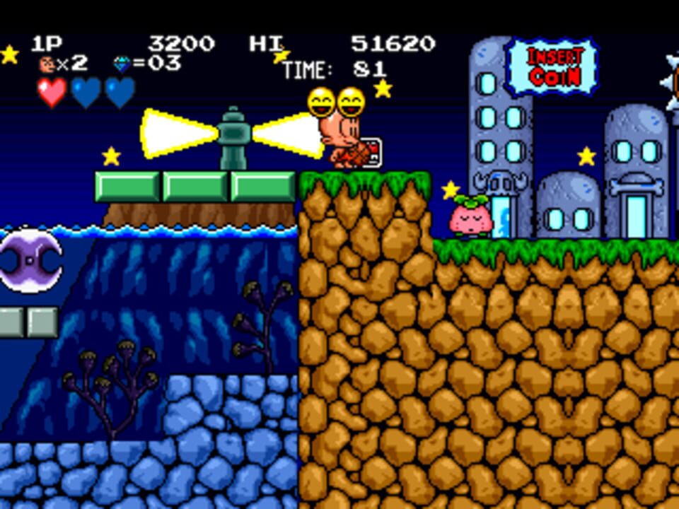 Developed by Kaneko and released in 1994, Bonk's Adventure: Arcade Version is based on the original Bonk games for the TurboGrafx-16 and PC Engine. However, the gameplay and level design are drastically different to suit arcade style play.
