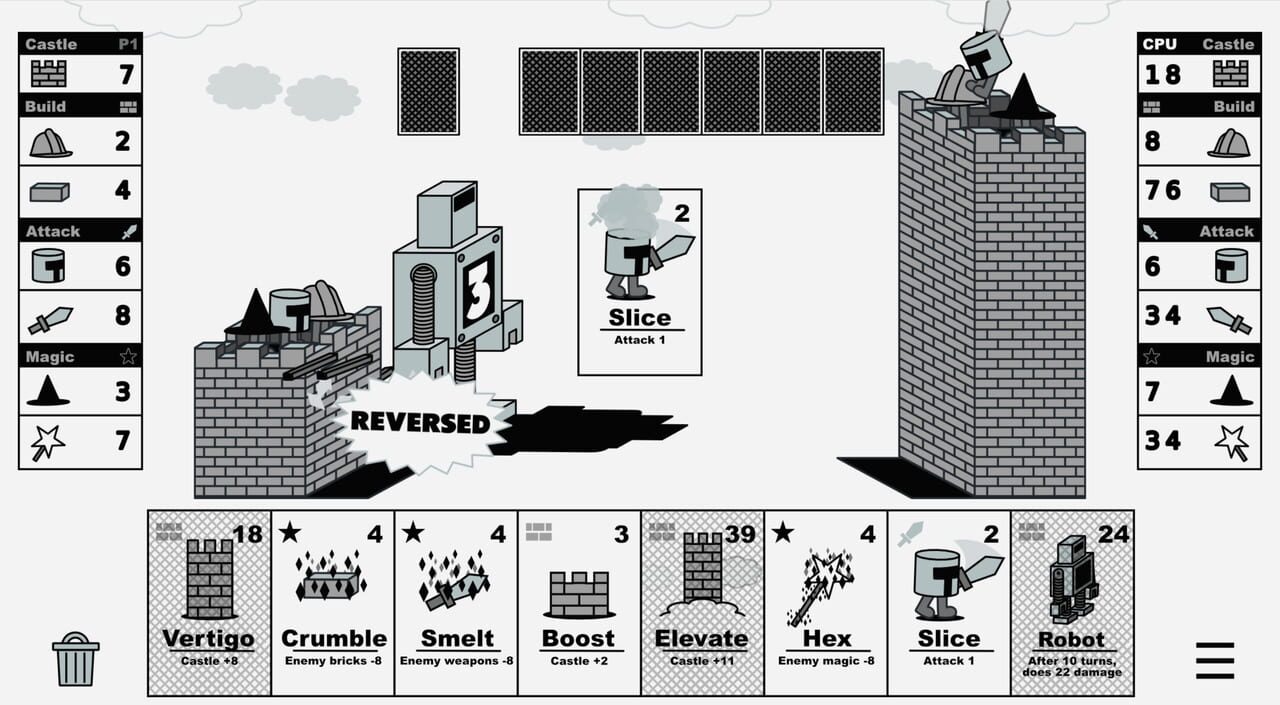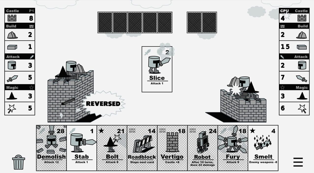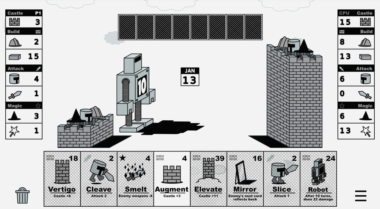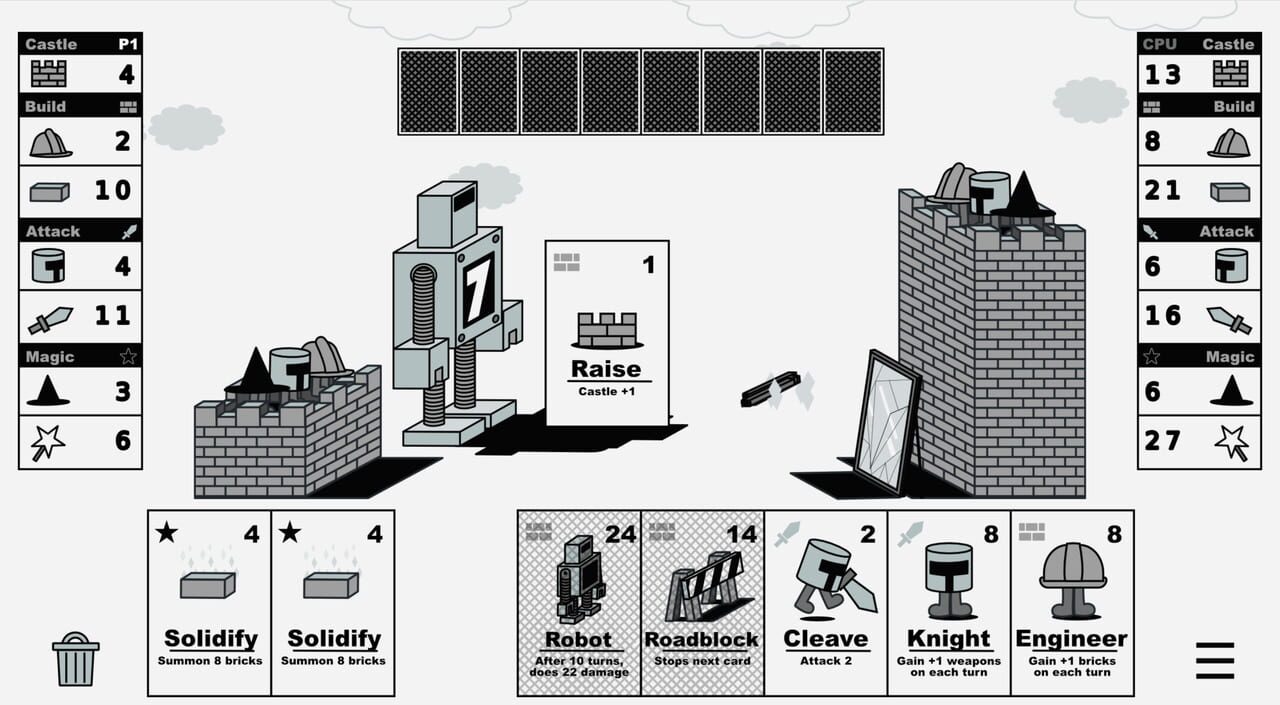 Castle V Castle is a stylish 1v1 card game inspired by browser classics like Castle Wars & Wordle. Grow your castle and reduce your opponent to rubble in a magic-fueled duel of wits and bricks. Earn rewards, unlock new modes, and complete randomized ...