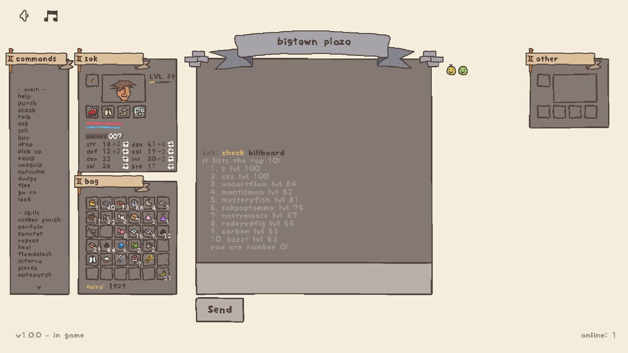 chatventures is a text-adventure MMORPG. you travel through a fantasy world where you interact with every thing through text commands such as "punch" and "check". each area is a different chatroom!