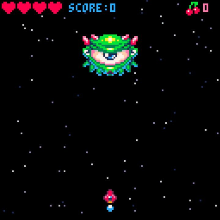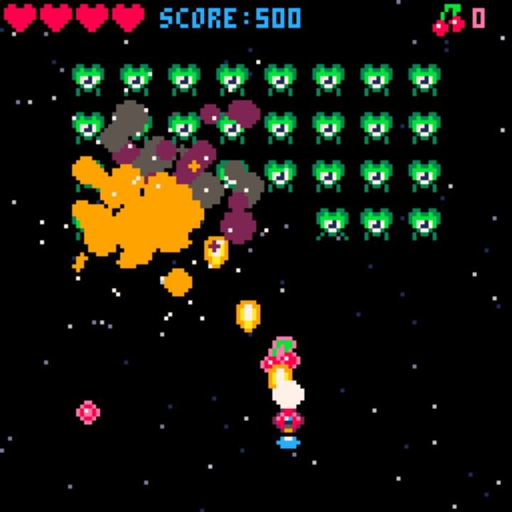 Cherry Bomb is a basic arcade Shoot 'em up game (Shmup) reminiscent of Space Invaders or Galaga. Pilot your red spaceship to blast your way through 9 waves of attacking aliens.