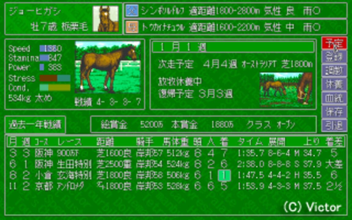 Horse racing and breeding simulation.