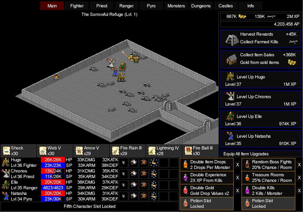 Clickpocalypse II is an incremental game disguised as an idle RPG. Create a party to bravely explore terrible dungeons and mercilessly exterminate every monster in the world. Find items, go up levels, learn spells, upgrade abilities, and earn achieve...