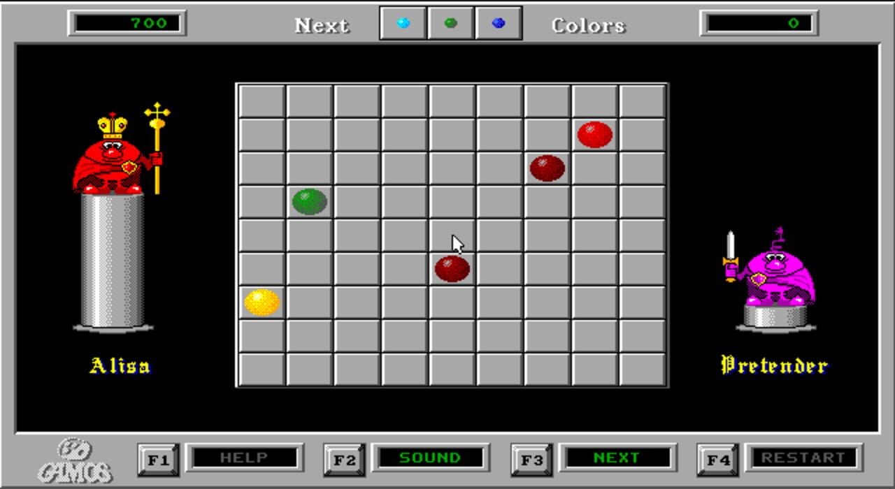 Players rearrange colored balls in order to create five in a row of the same color.