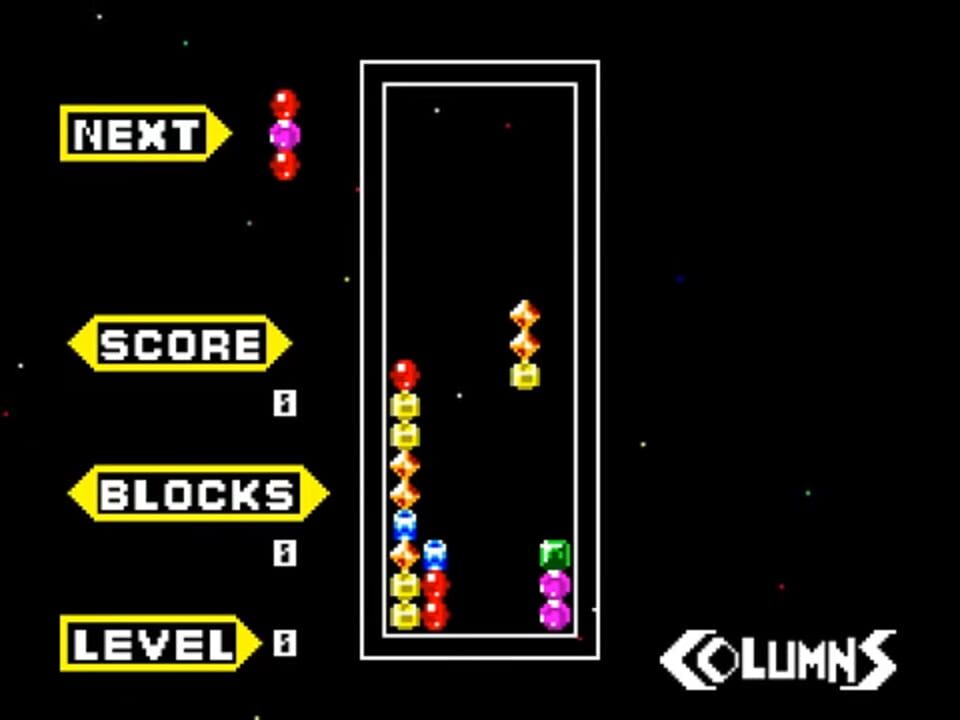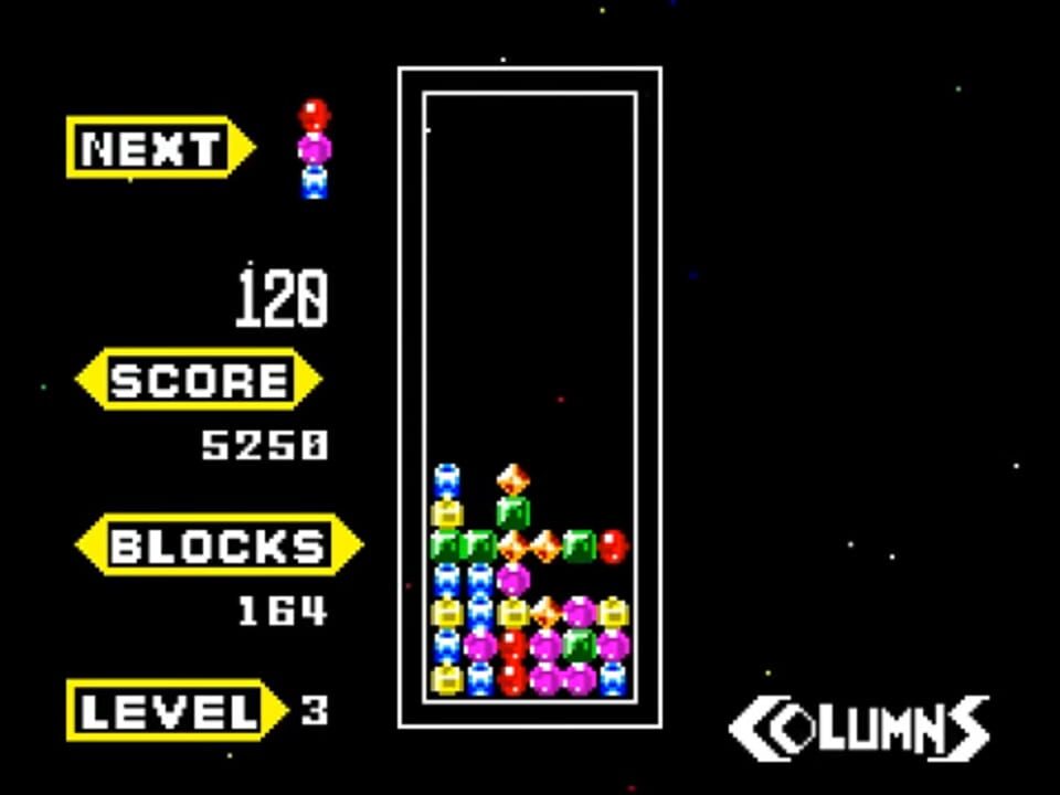 Columns is a match-three puzzle video game created by Jay Geertsen in 1989. Early versions of the game were ported across early computer platforms and Atari ST. In 1990, Jay Geertsen sold the rights to Sega, who ported the game to several Sega consol...