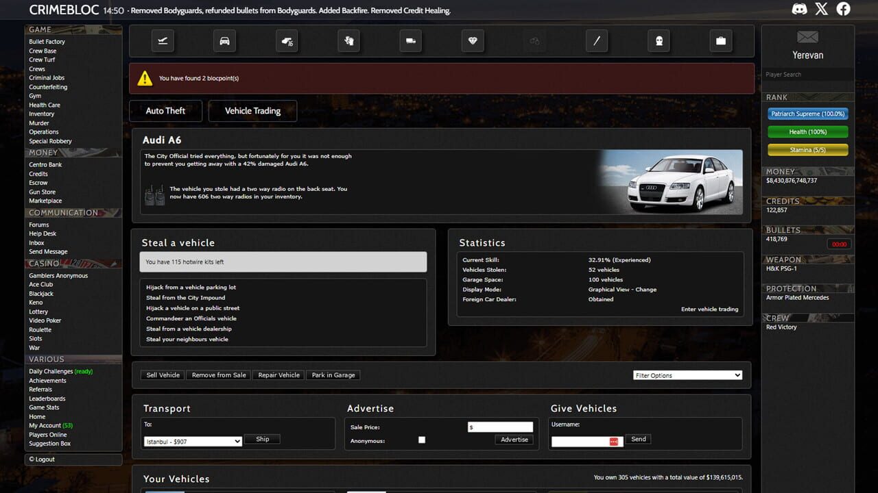 Free-to-Play Text-Based Mafia MMO Set in the Eastern Bloc. A gritty text-based MMO where you rise through the ranks of organized crime in the Bloc. For 18 years, players have forged criminal empires, fought brutal turf wars, and survived in a world w...