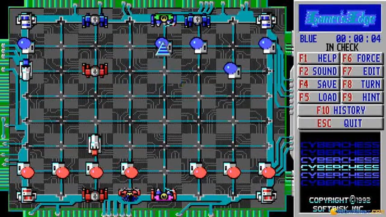A chess game with cyber-/Tron-like theme. The layout of the board has been modified to have pieces rest on intersections instead of squares, but the gameplay is identical to chess.
