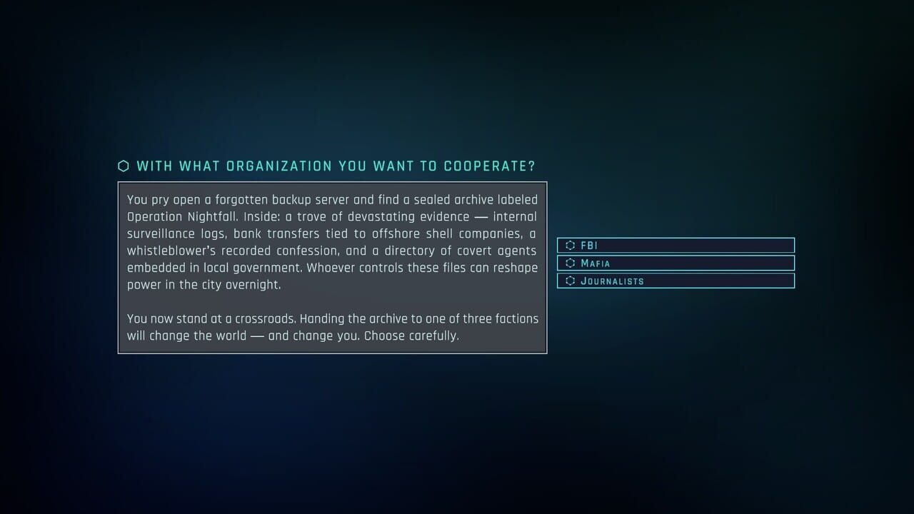 Explore CyberQuest, where your decisions define you. Journey from a novice freelancer to a skilled hacker. Choose your path: white hat, black hat, or hacktivist, and embrace the cyber challenge!