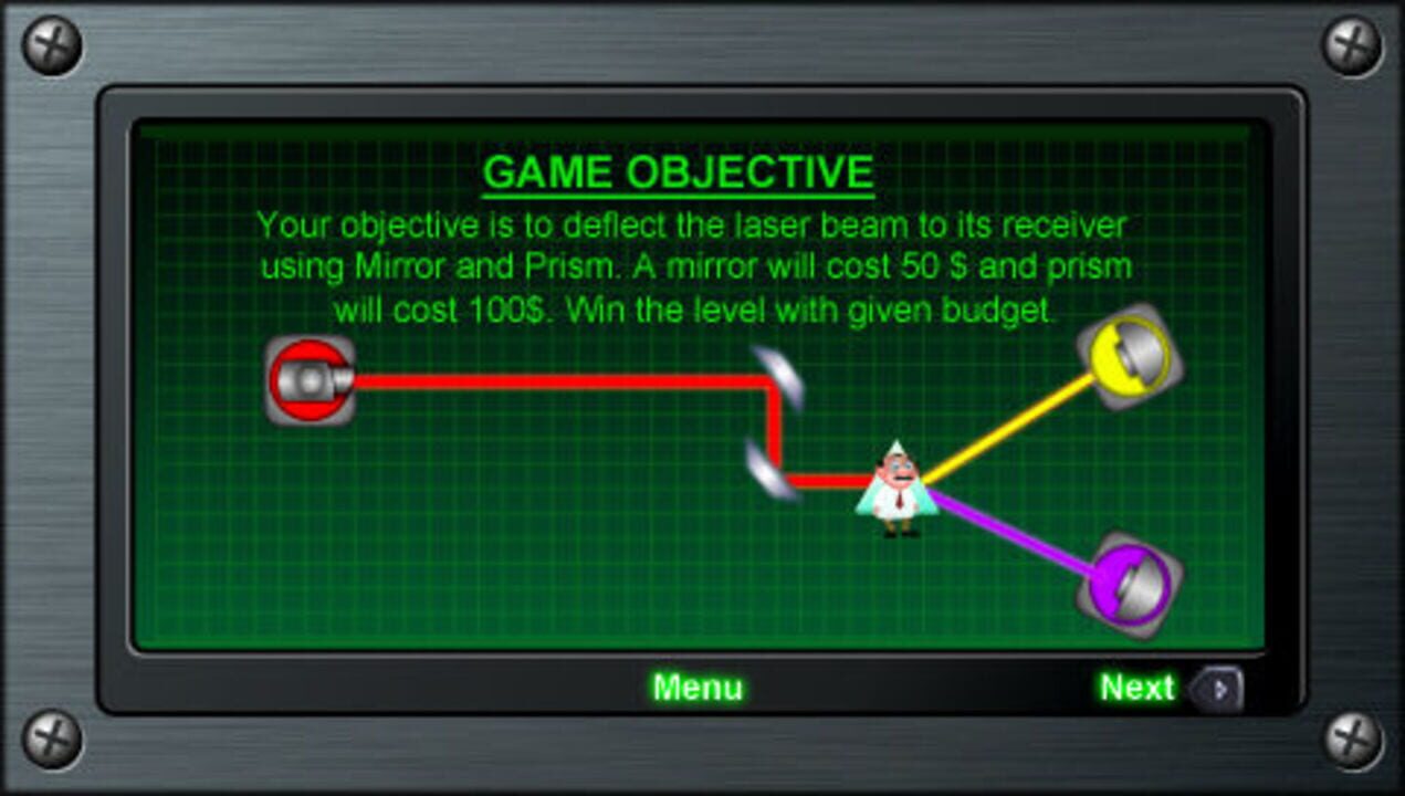 A puzzle game where your objective is to control a laser beam towards its destination. You goal is to redirect the laser beam from its source to the destination using objects like mirrors and prisms. But beware! There are valuable objects in the way ...