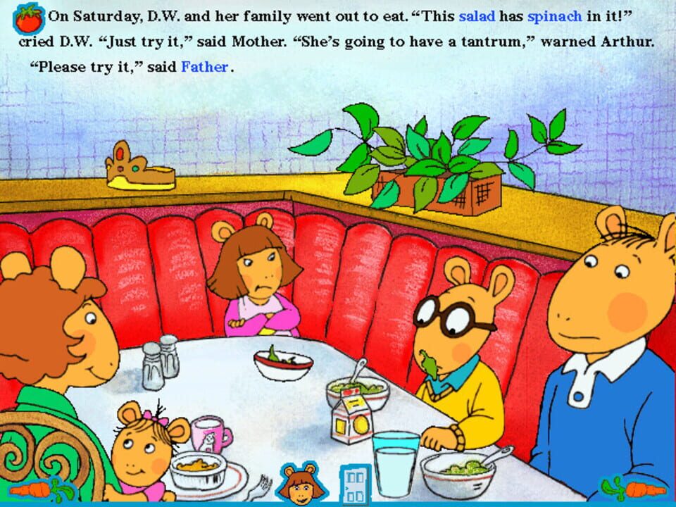The story centers around D.W., who is an aardvark, and the younger sister of Arthur. D.W. is wary of trying any new foods and would rather stick to plain spaghetti noodles or peanut butter and jelly s...