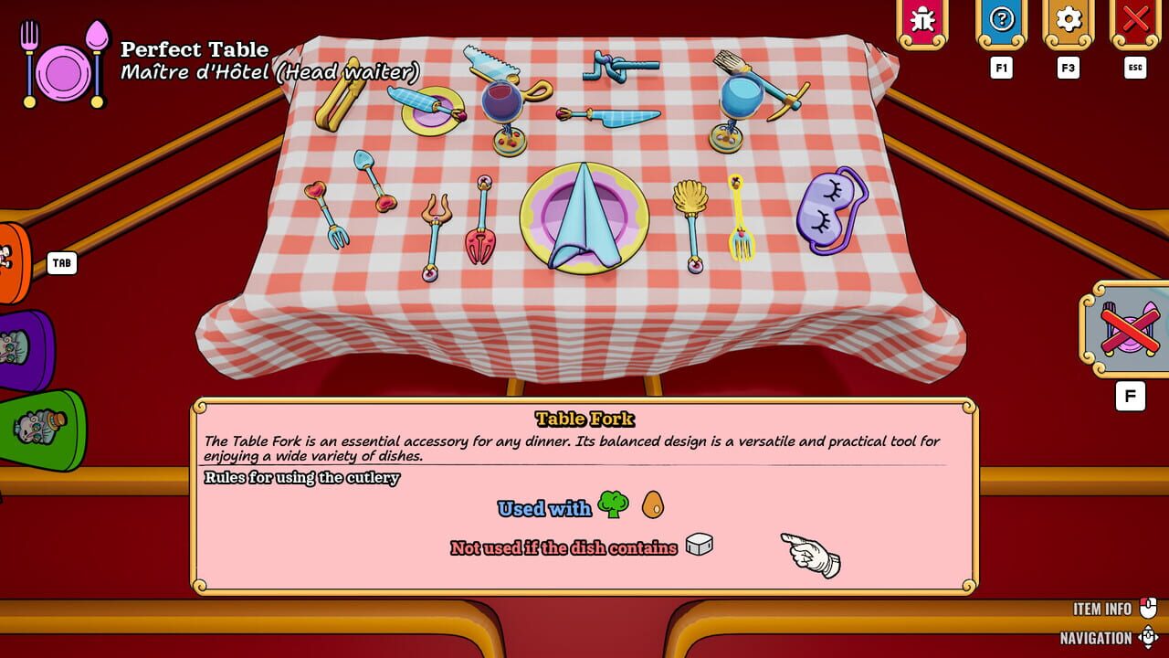 Welcome to Etiquette Elegance – a stylish and atmospheric waiter simulator set in a retro-futuristic restaurant! Your task is to flawlessly set the tables, taking into account all the intricacies of restaurant etiquette and the unique preferences of ...