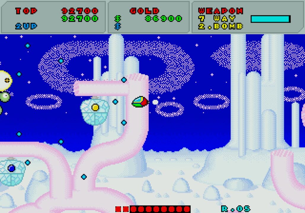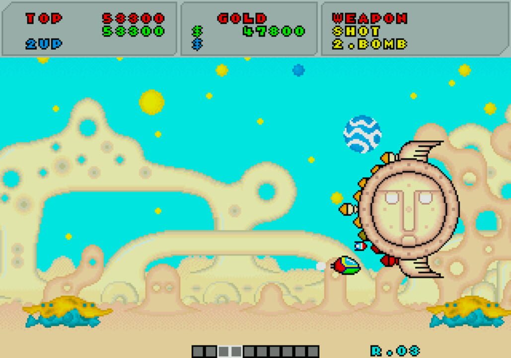 Fantasy Zone is an arcade style shooter for one or two players. The goal is to destroy all of the creatures on each planet and collect as many of the lost coins as possible. At the end of each level is a large enemy that will have to be defeated befo...