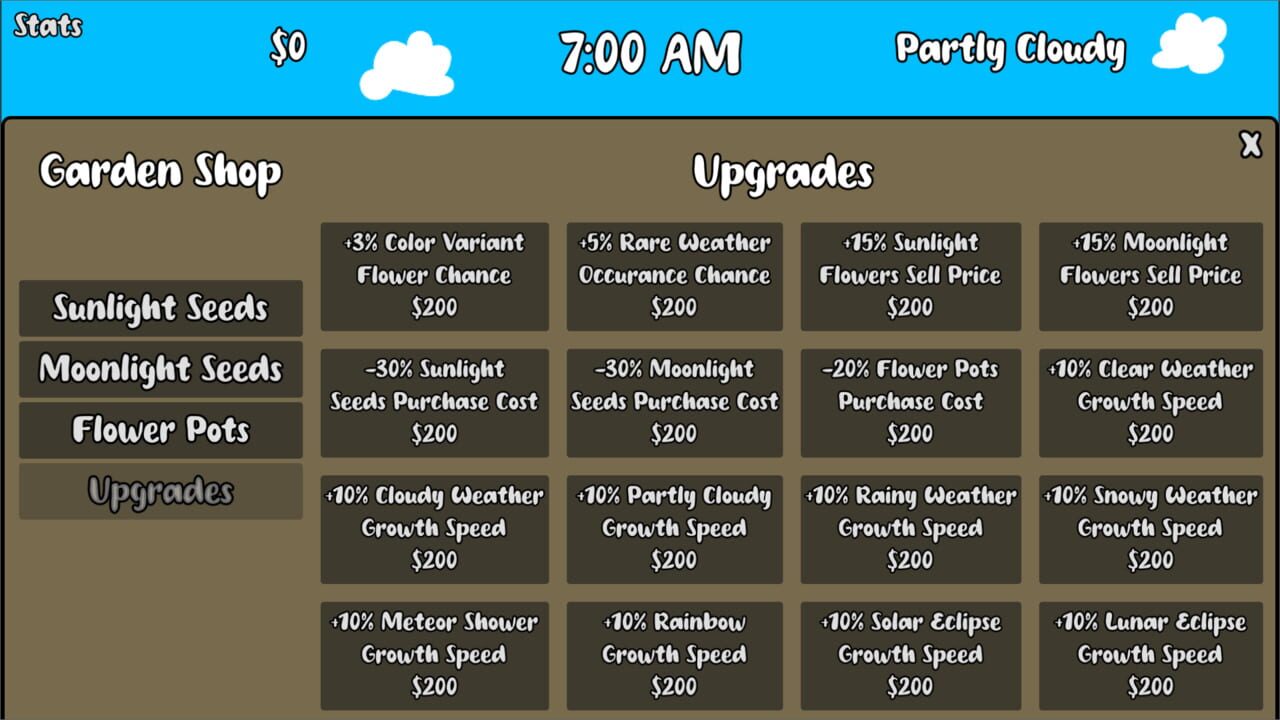 FloraLumina is a peaceful, magical gardening game where sunlight, moonlight, and shifting weather impact your garden's growth. Nurture your garden of beautiful hand-drawn flowers, enjoy soft ambience, and play at your own pace.