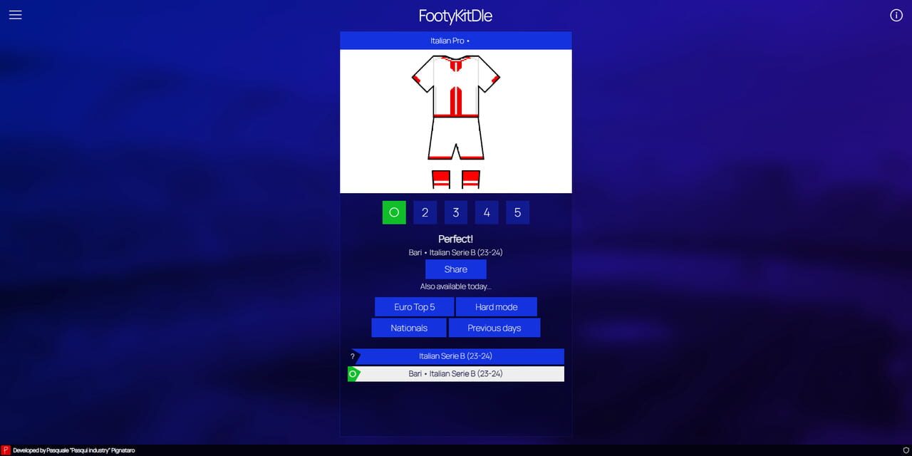 A daily quiz where the player has to guess the football team by their home hit... one piece at a time