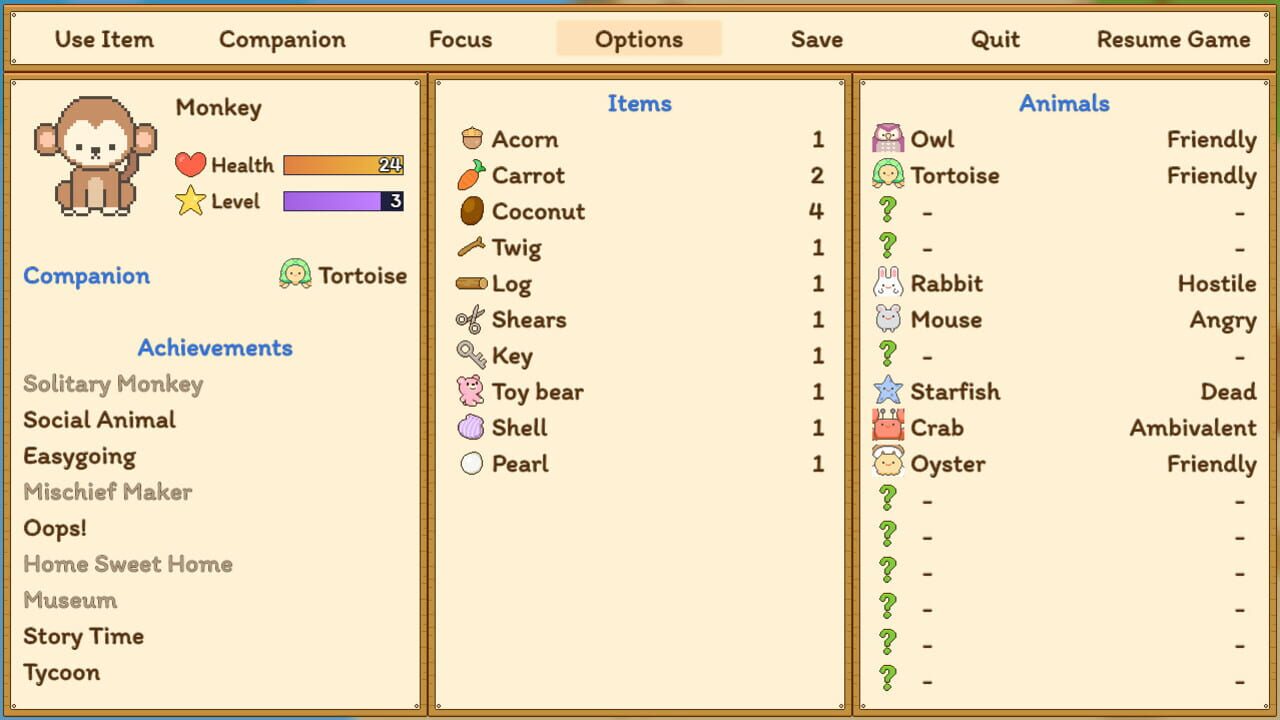Help a monkey find a fallen star in this short adventure game! Meet and recruit other animals, find useful items, and discover new abilities. Multiple endings available depending on your choices!