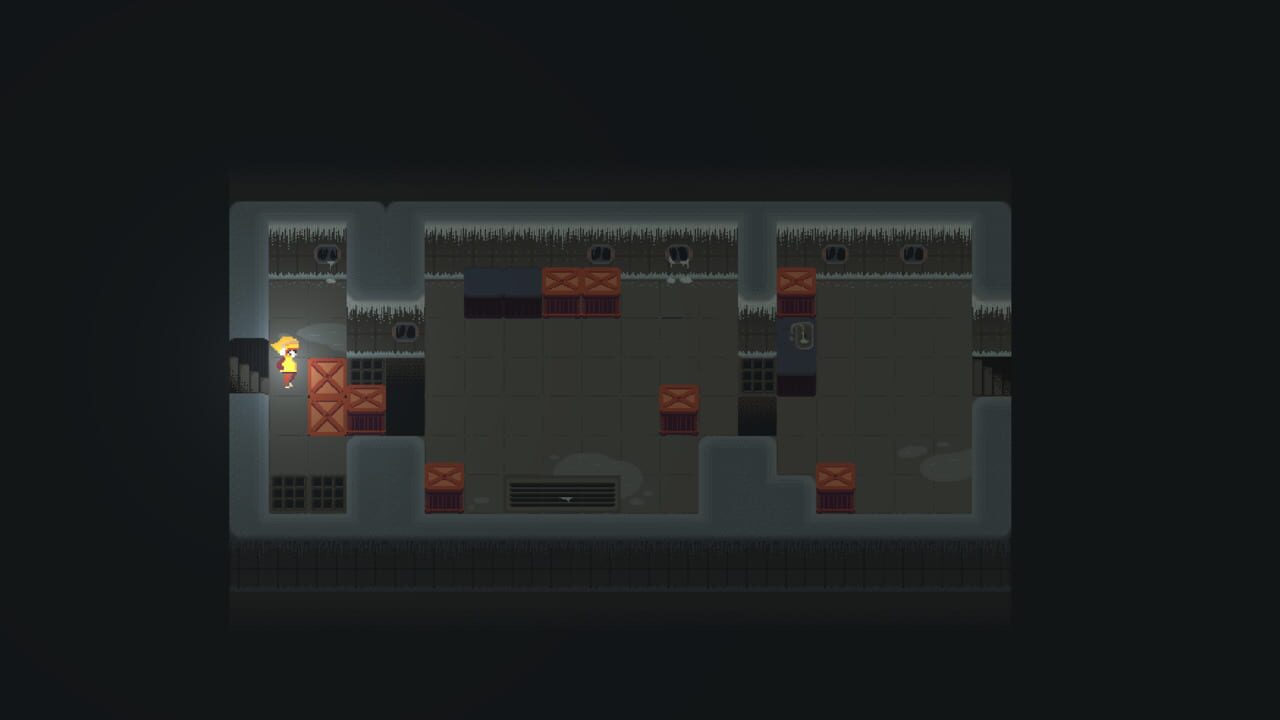 A game that mixes the mechanics of pushing boxes to specific locations with elements of horror and suspense.
