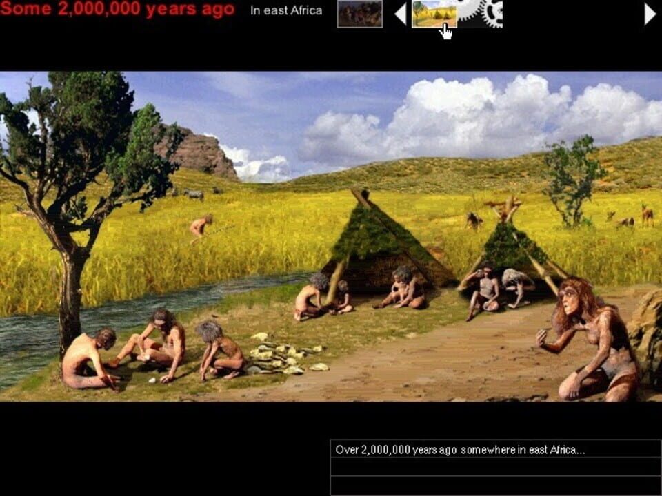 Educational historical FMV puzzle game. Follow the evolution of human civilization and technology from prehistory to modern times and solve puzzles tied to what you've learned to progress. Educational video game, The player is guided by Jeanne Morea...