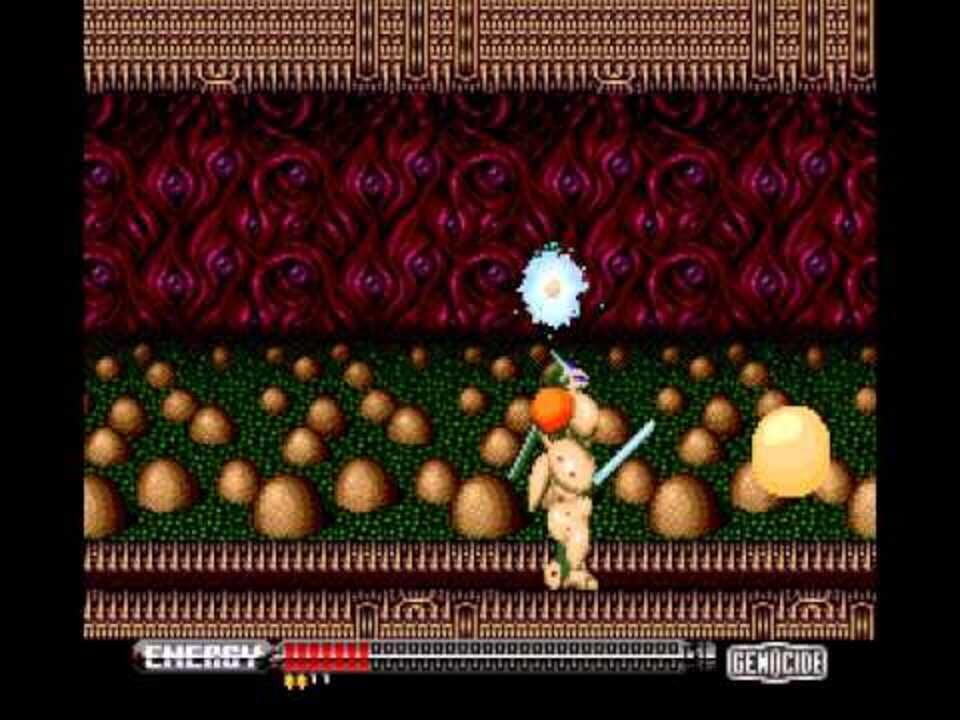 A side-scrolling mecha-themed action game.