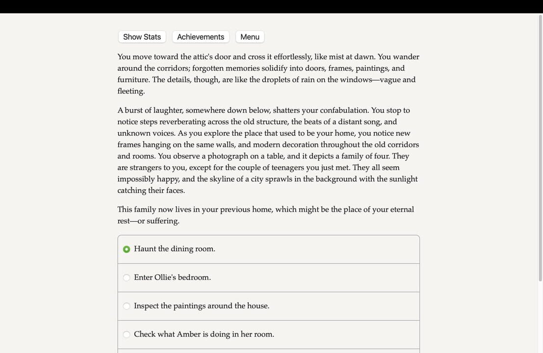 This is the story of a family living in a haunted house in New Hampshire. And you're the one haunting them.