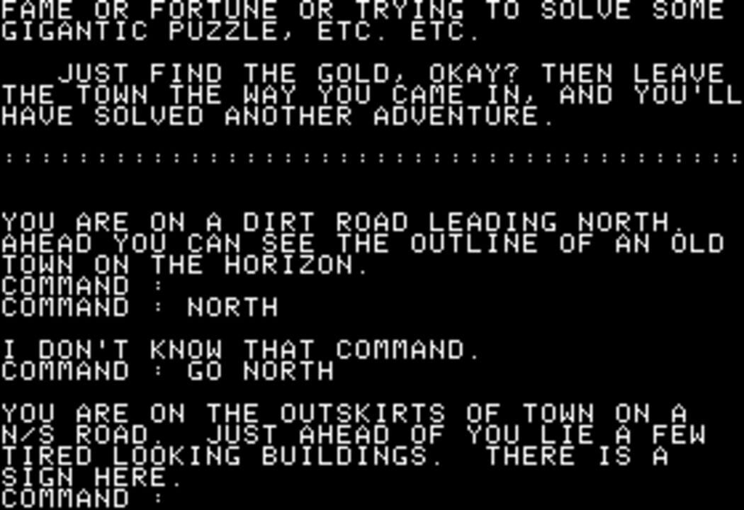 In this text adventure you are searching for thirteen treasures in an old abandoned wild west town and its nearby mine.