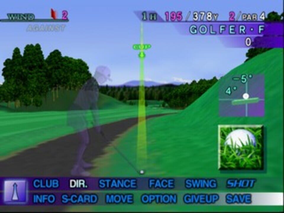 The Golf Navigator game series let's the player enjoy a golf simulation where the hallmarks are panoramic 360 degree views of the courses and an intuiative system which allows for proper impartation of power and english to the virtual golfer's swing....