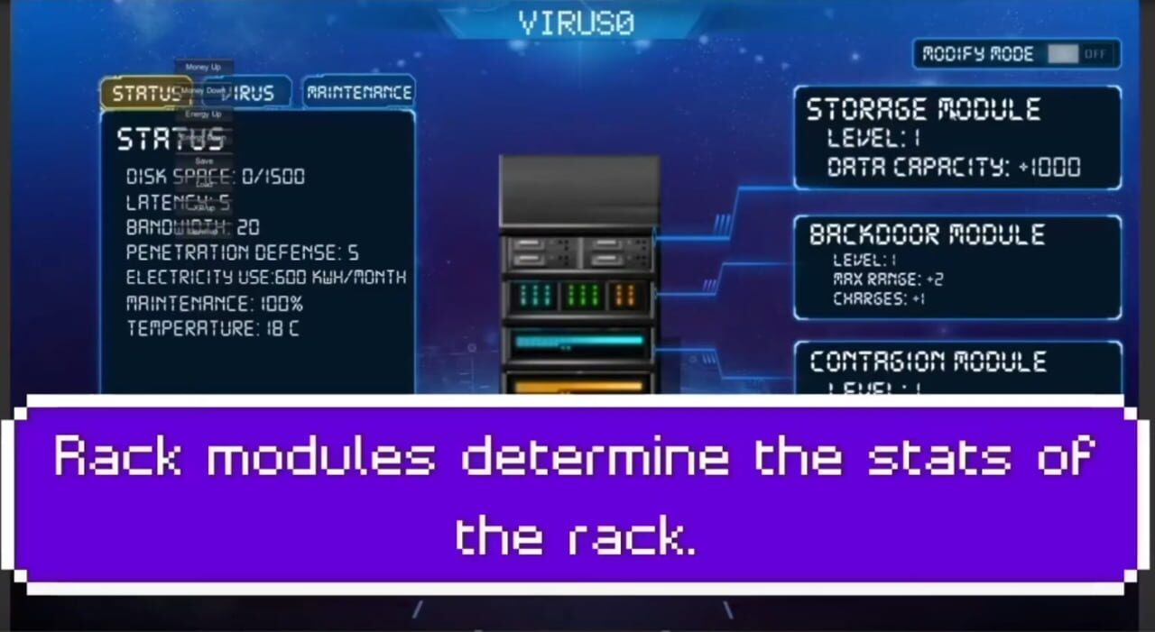 HackRack is a game where you live in a city and use your hacking skills to influence the world around you. The player will encounter many people and organizations, and their hacks will impact the world around them. The player will need to expand thei...