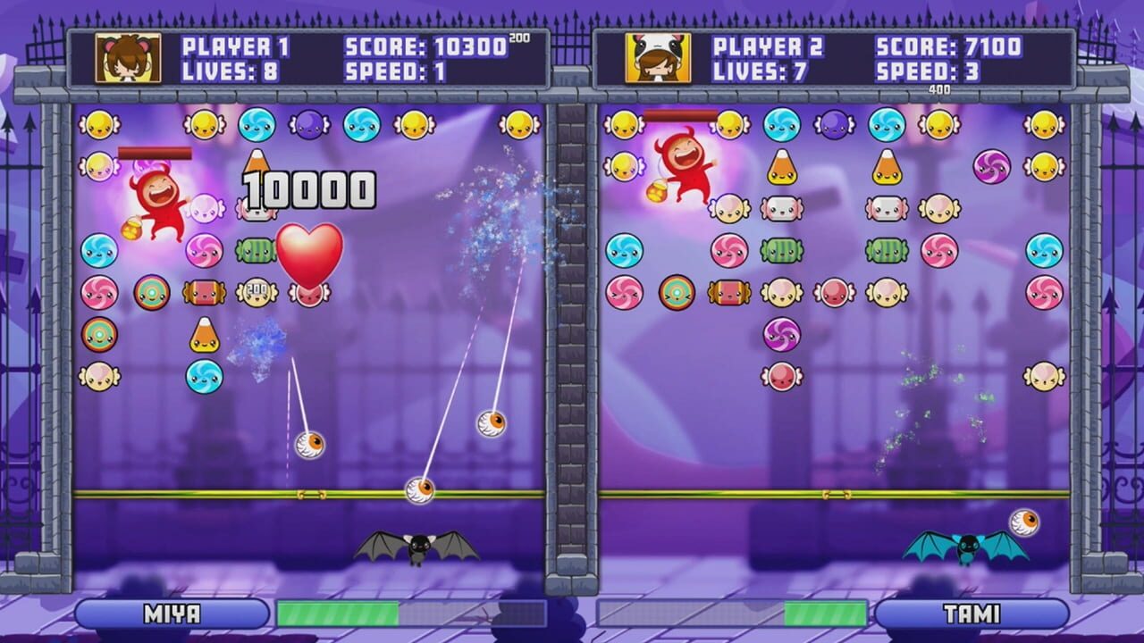 Halloween Candy Break Head to Head is a retro arcade game that lets 1 and 2 players play head to head in a competitive arcade environment.