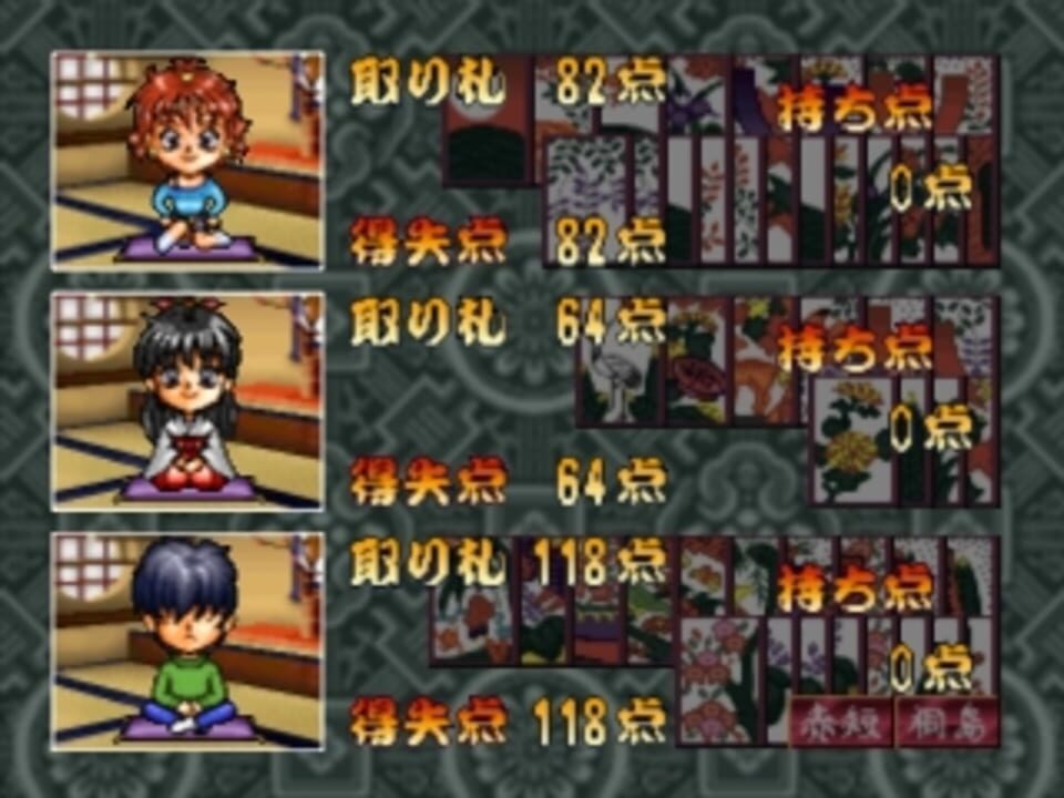 Hanafuda Graffiti - Koi Monogatari uses that Hanafuda rules and features different girl character to play vs and also different game modes (story and vs). In the story mode the player controls a young boy that will go around town meeting different gi...