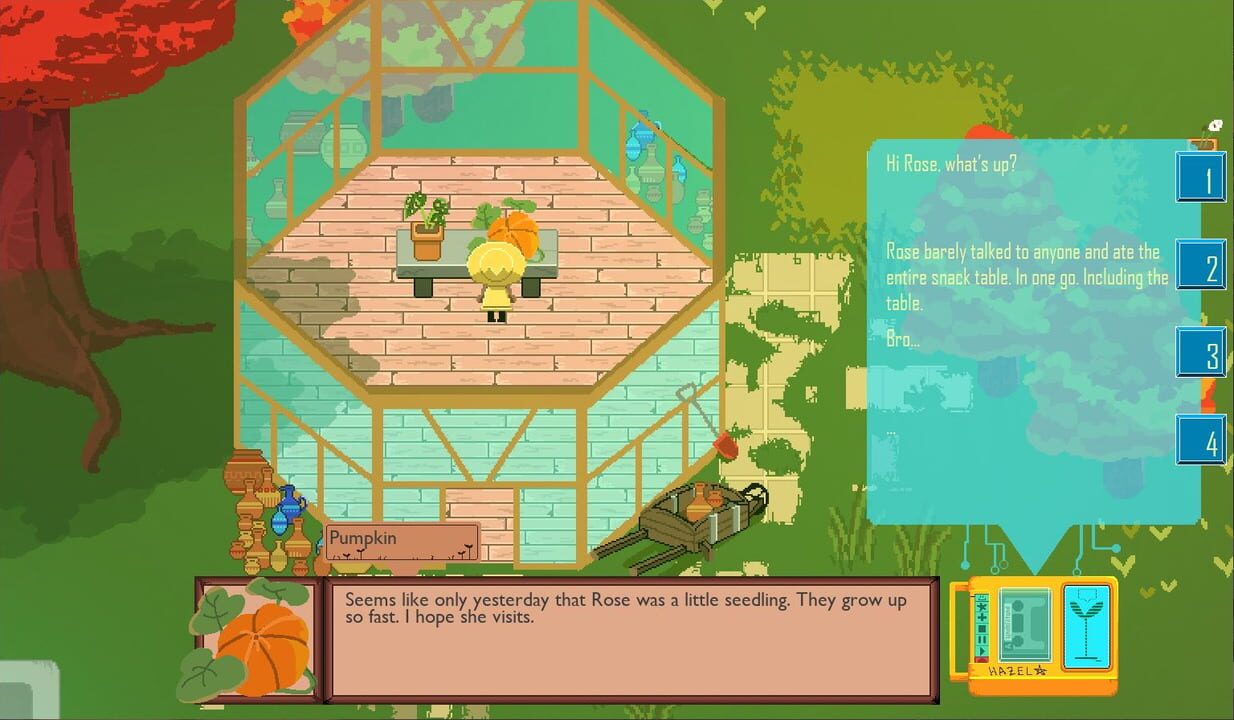 A kind and cosy game about listening to others. People say talking to plants helps them grow. Hazel knows better. Most plants can't understand human speech. Luckily, Hazel is a brilliant techno witch who has made a gadget that will help her commun...