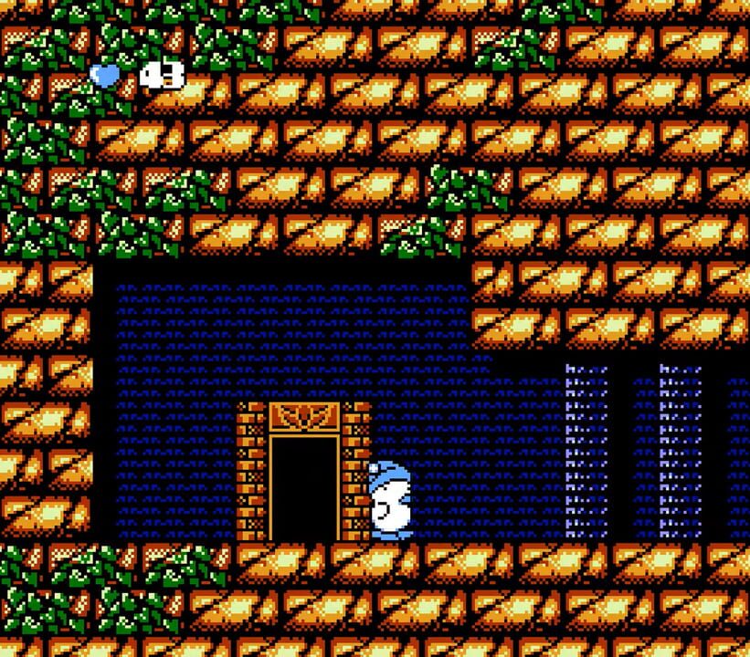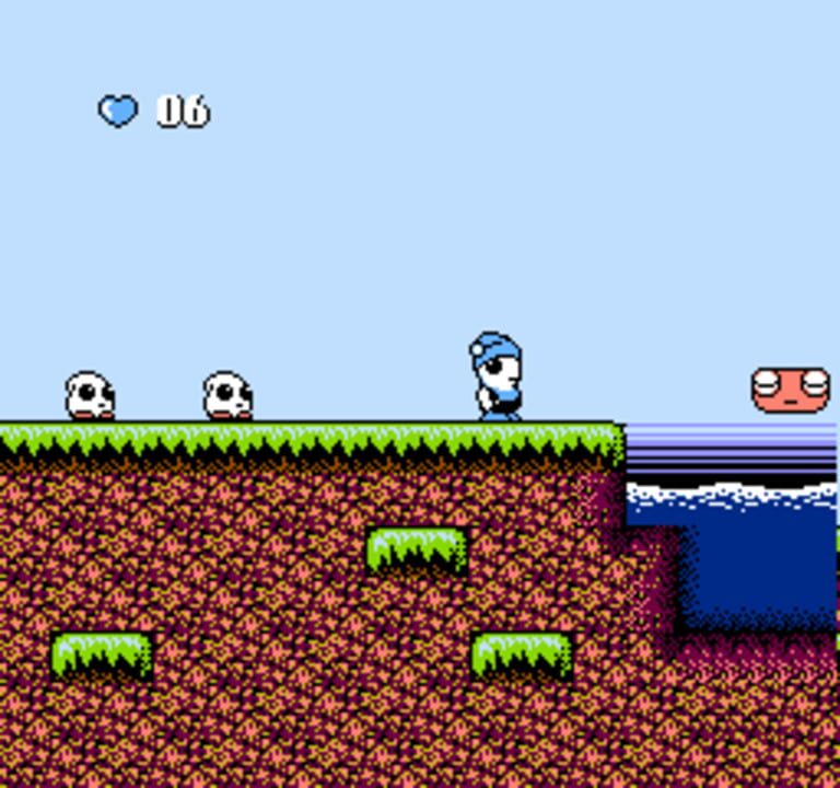 Hebereke is a side-scrolling platform game set in a free-roaming environment. The game's world comprises interconnected areas which consist of outdoor sections, caves, water, and other thematic places with platform structures and wandering enemies.