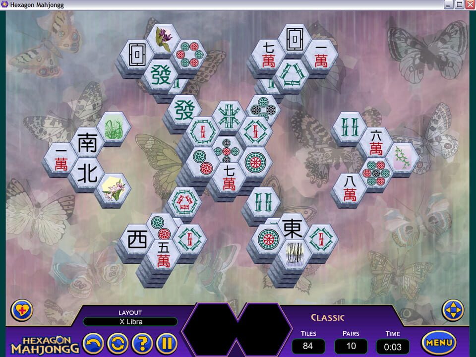 In Hexagon Mahjongg you can play through hundreds of layouts with beautiful hexagon-shaped tiles in authentic-looking styles and rich colors.
