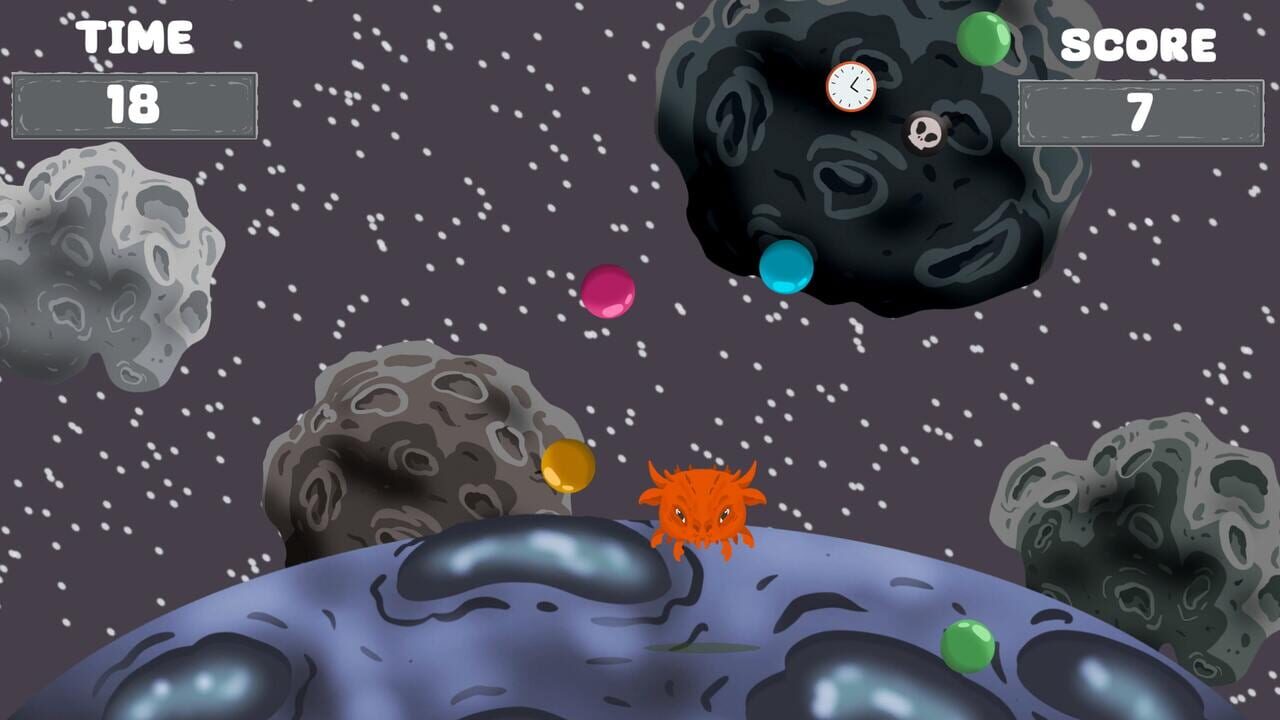 You have reincarnated as a hungry monster, who is eating candies. Avoid the bombs and collect the time to live longer.