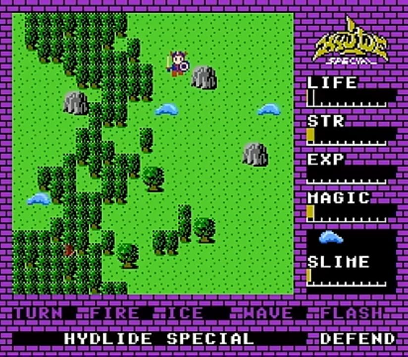 NES/Famicom port of Hydlide. An evil demon named Varalys casts a curse upon the princess Ann, turning her into three fairies. You control Sir Jim and set out to find the fairies, and then slay Varalys. Only by vanquishing Varalys can the curse be lif...