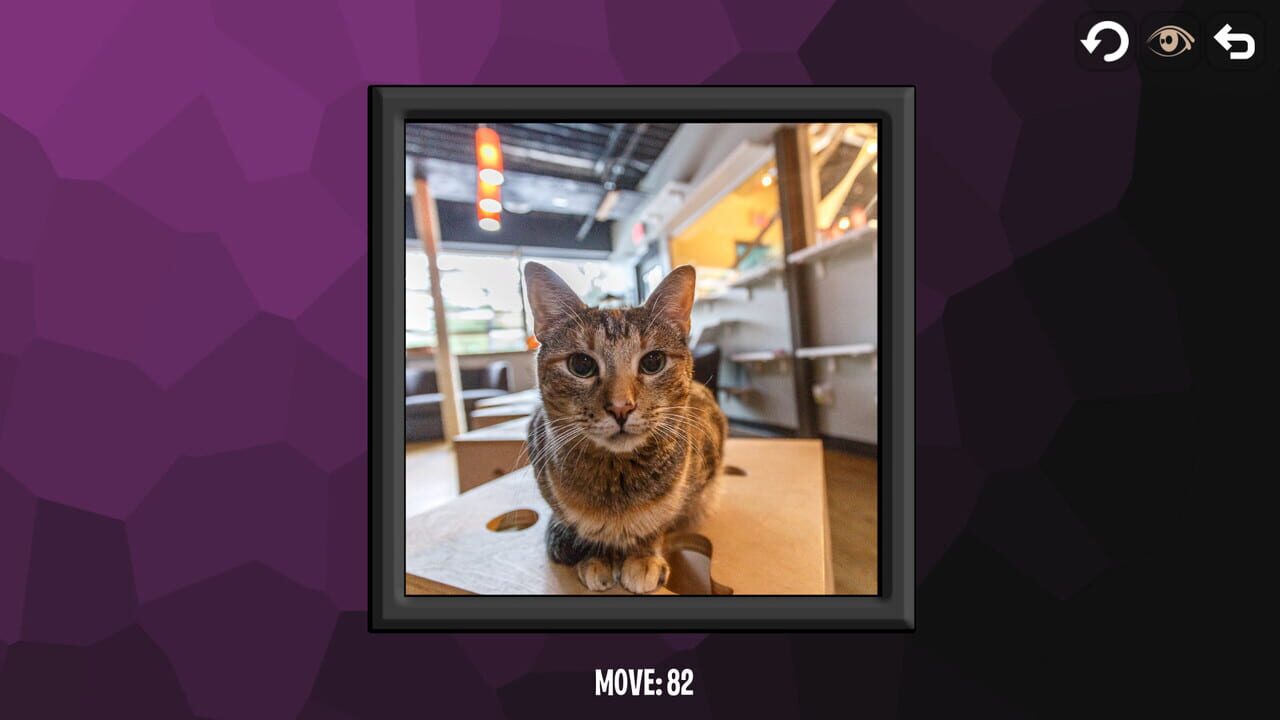 A puzzle game in which you want to build an image (with cats) so that the picture was like the original image. Move the tiles of the puzzle wisely to collect the correct order of the pieces of images.