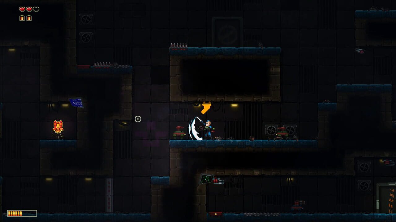 Iron Dungeon combines a twin-stick shooter and a 2d platformer seasoned with roguelike elements.