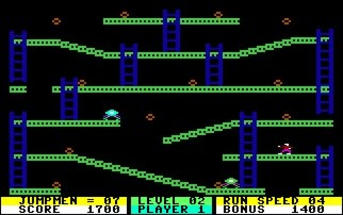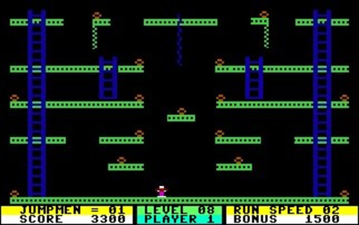 Jumpman is a platform game written by Randy Glover and released by Epyx in 1983. Originally developed for the Atari 8-bit family, versions were also released for the Commodore 64, Apple II, IBM PC, and ColecoVision.